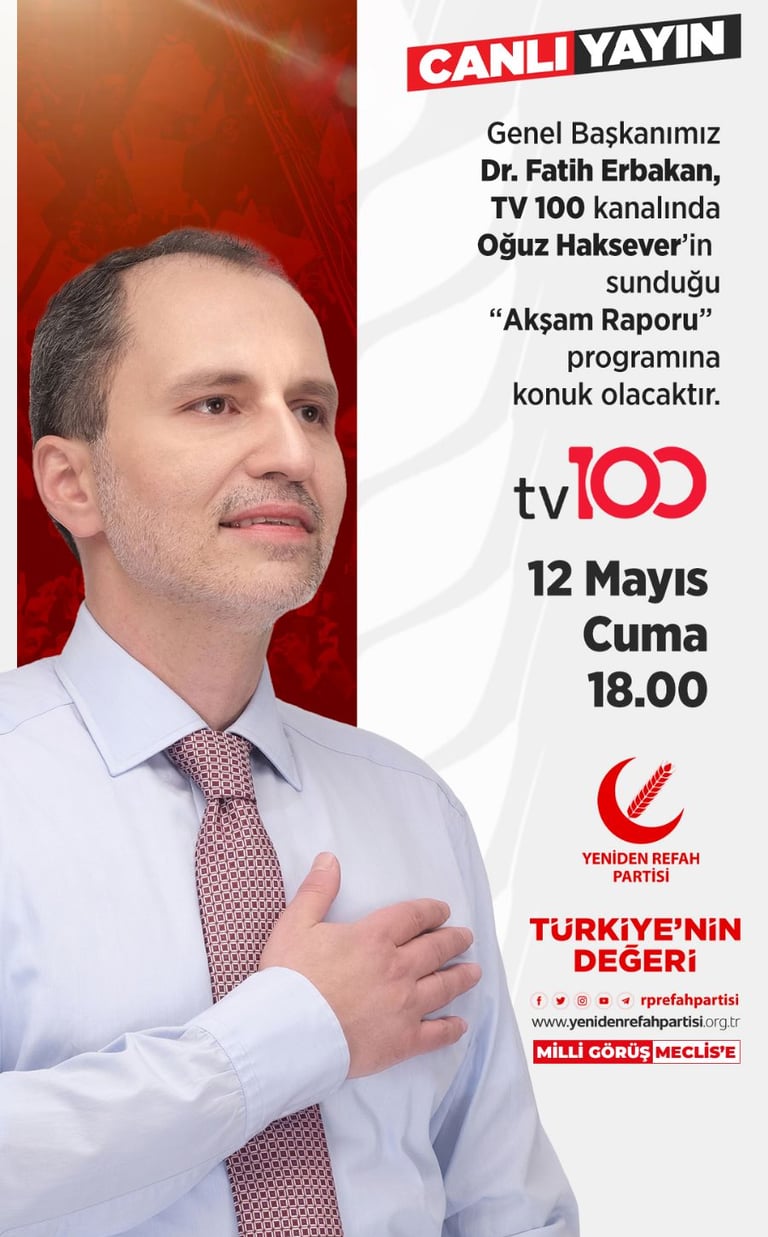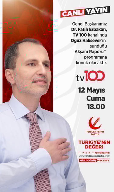 Genel Başkanımız Dr. Fatih Erbakan, İhsan Şenocak Hoca YouTube kanalının canlı yayın konuğu olacaktır.