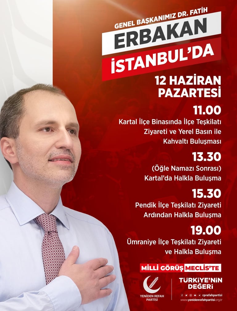 Genel Başkanımız Dr. Fatih Erbakan, yarın İstanbul 1. Bölge’de halkımıza ve teşkilatlarımıza teşekkür ziyaretlerini gerçekleştirecektir.