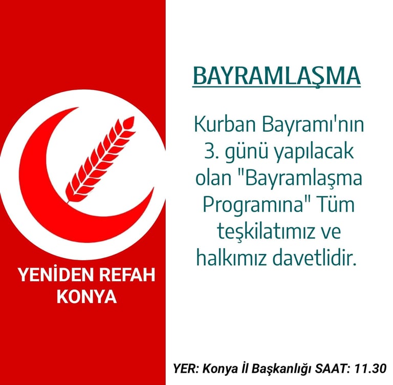 Kurban Bayramı'nın 3.günü yapılacak olan "Bayramlaşma Programına" Tüm teşkilatımız ve halkımız davetlidir.